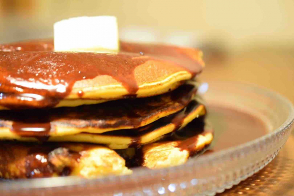 生地だけでも充分に美味しいパンケーキですが、アリバカカオと甜菜糖で作った特製チョコソースをたっぷりとかけて、ママノ特製チョコレートパンケーキをお楽しみいただけます。