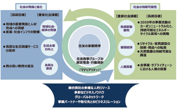 「世界中が持続可能な社会の実現というテーマを抱えている。これを重く受け止める必要がある。持続可能な社会の実現のために当社は何ができるのかを、しっかりコミットしなければならない。社会が真に求めている価値を提供することができれば、社会と共に持続的に成長できる。長期的には、住友商事の成長と社会課題への取り組みが1つの軸で一致すると考えている」