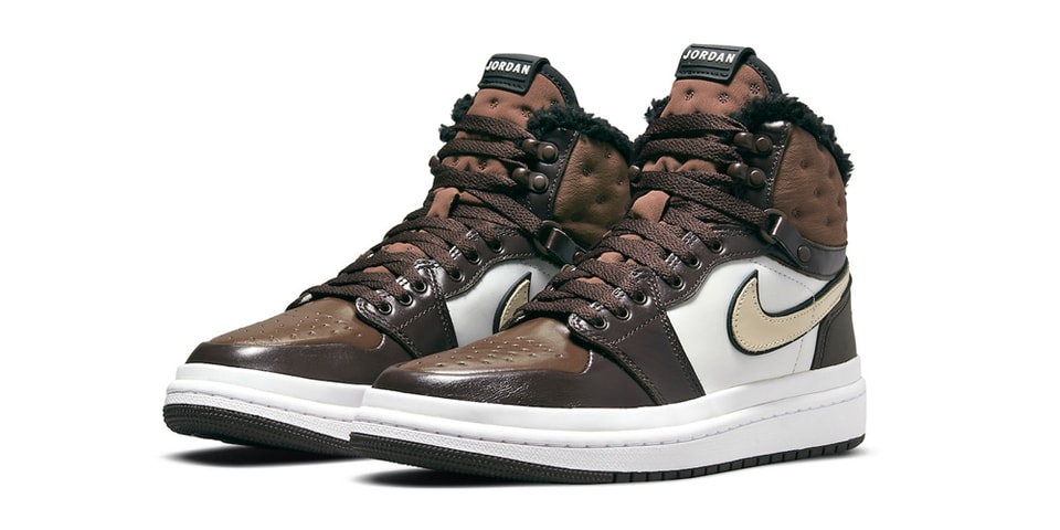 2021年秋冬シーズンに向け、保温性、防寒性共に優れたシェルパフリースを履き口部分に施したAir Jordan 1 Acclimate。頑丈なレザーを内側に織り込みながら縫製したトゥ部分、ボリューム感のあるパッドを備えたシュータン、アンクル部によって、冬の冷たい空気に晒されたり、靴内に雪や水が入り込んだりしないような工夫が施されている。今回登場する“Chocolate”は、オールブラックだった“Triple Black”とは打って変わってブラウン系のカラーブロッキングを用いたポップな1足に。トゥボックス、シュータン、アンクル部分にはミルクチョコレートを彷彿とさせるまろやかなカラーを、アイレットを含むオーバーレイにはダークチョコレートのように艶やかなブラウンを採用。スウッシュにのみ柔らかなアイボリーを用い、ホワイトチョコレートのような甘くふんわりとした柔らかさをプラスしている。
