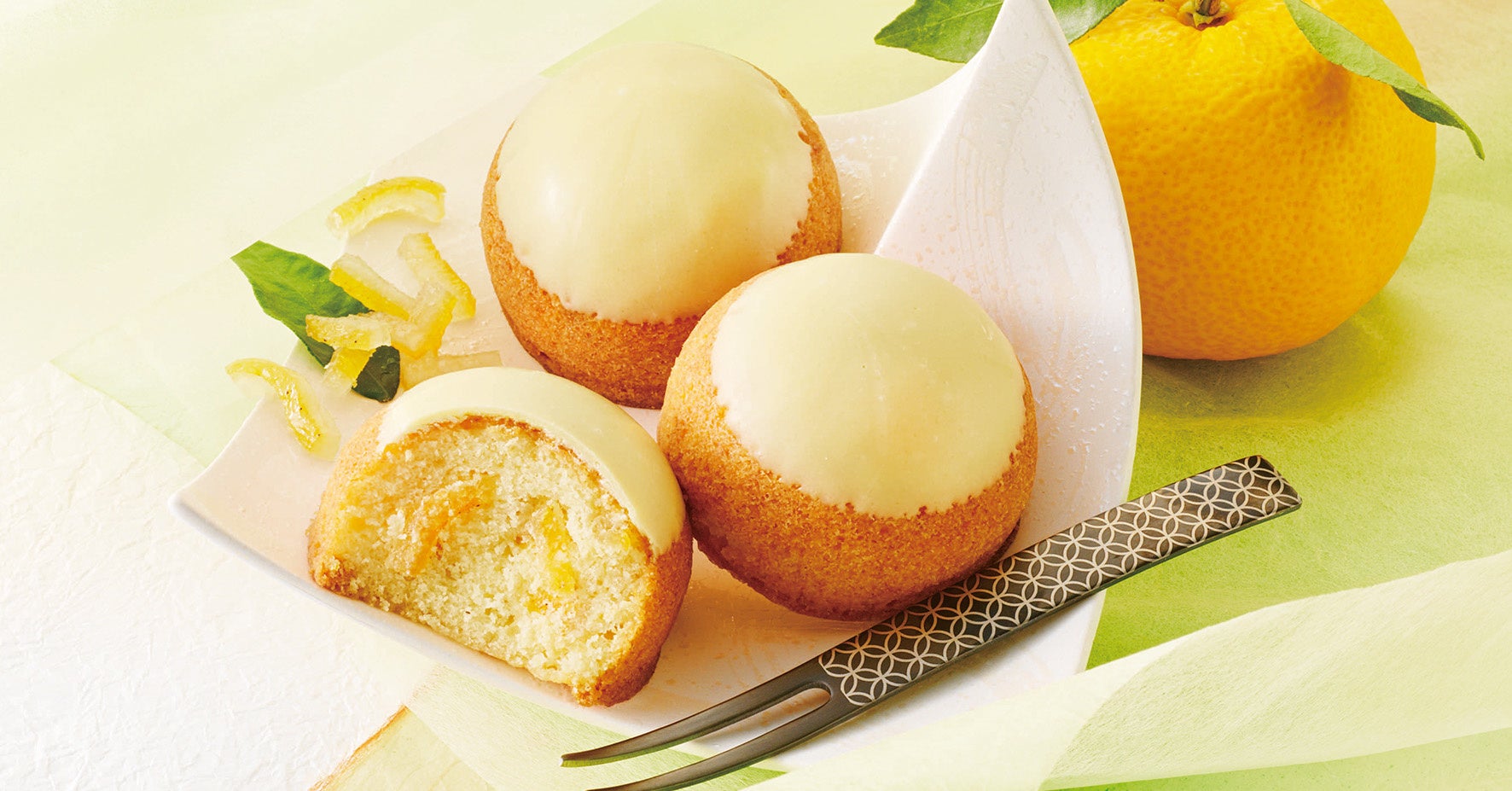 京都府水尾のゆずを使ったゆずピールを刻んで入れて焼き上げたバター生地を、ほんのりとゆずの風味がするグレーズ(※)で仕上げたプチケーキ。日本の柚子発祥の地と言われ、柚子の里として知られる水尾のゆずは香り高く、甘酸っぱい濃厚な風味が特長。ゆずピールはシロップで煮込んだ後、ゆずリキュールで漬け込んでいます。また、ピール自体を柔らかくしたり、大きさにもこだわり、食感も楽しめるようにしています。上品でさわやかなゆずの風味とピールの食感をお楽しみください。食べる前に少し室温になじませてから召し上がっていただくのがおすすめです。