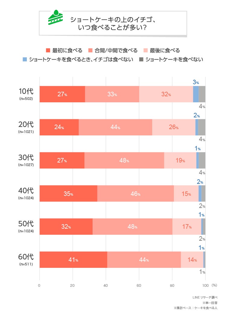 ■ショートケーキのイチゴは、どのタイミングで食べる人が多い?