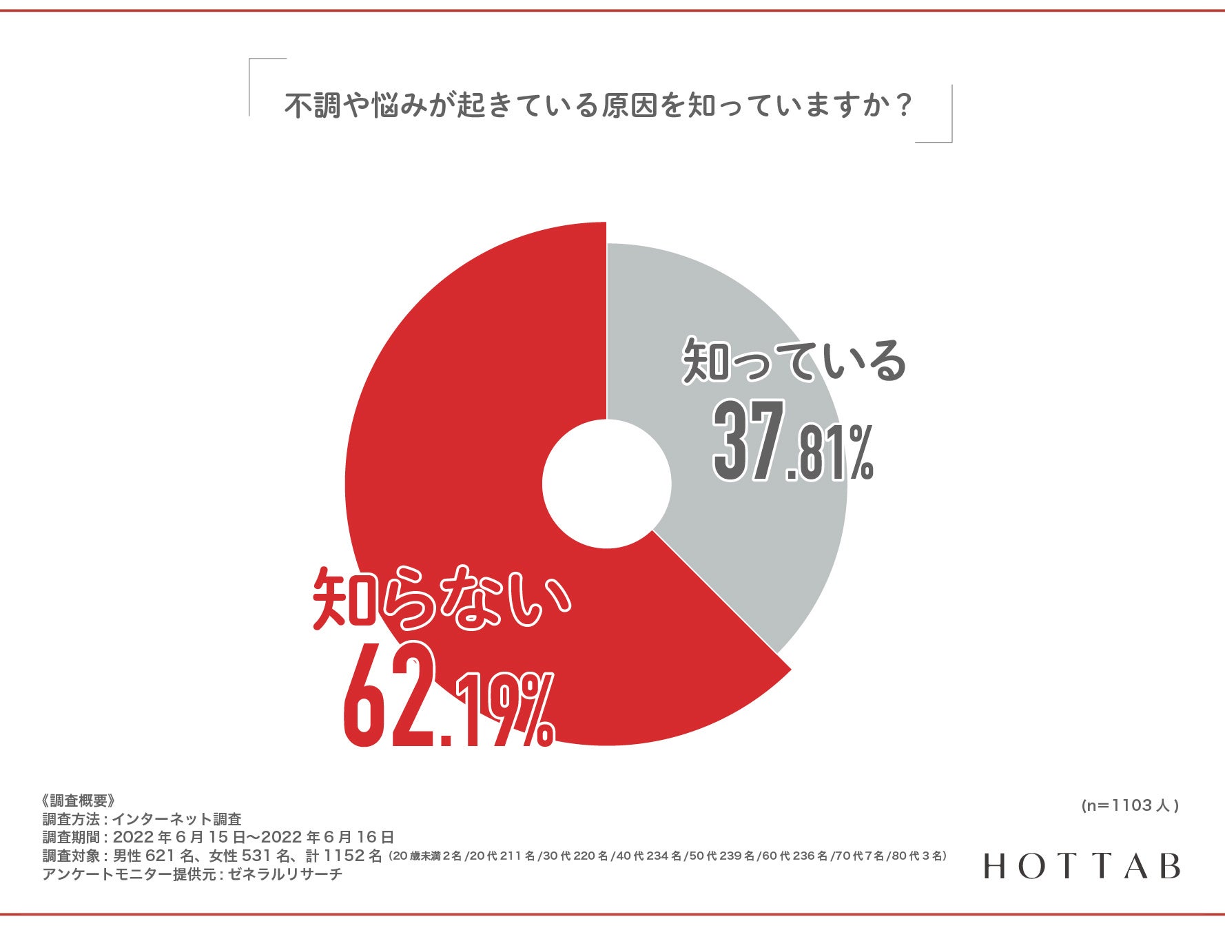 - 不調や悩みに対して原因がわかっていない方が6割、対処していない方も6割いました