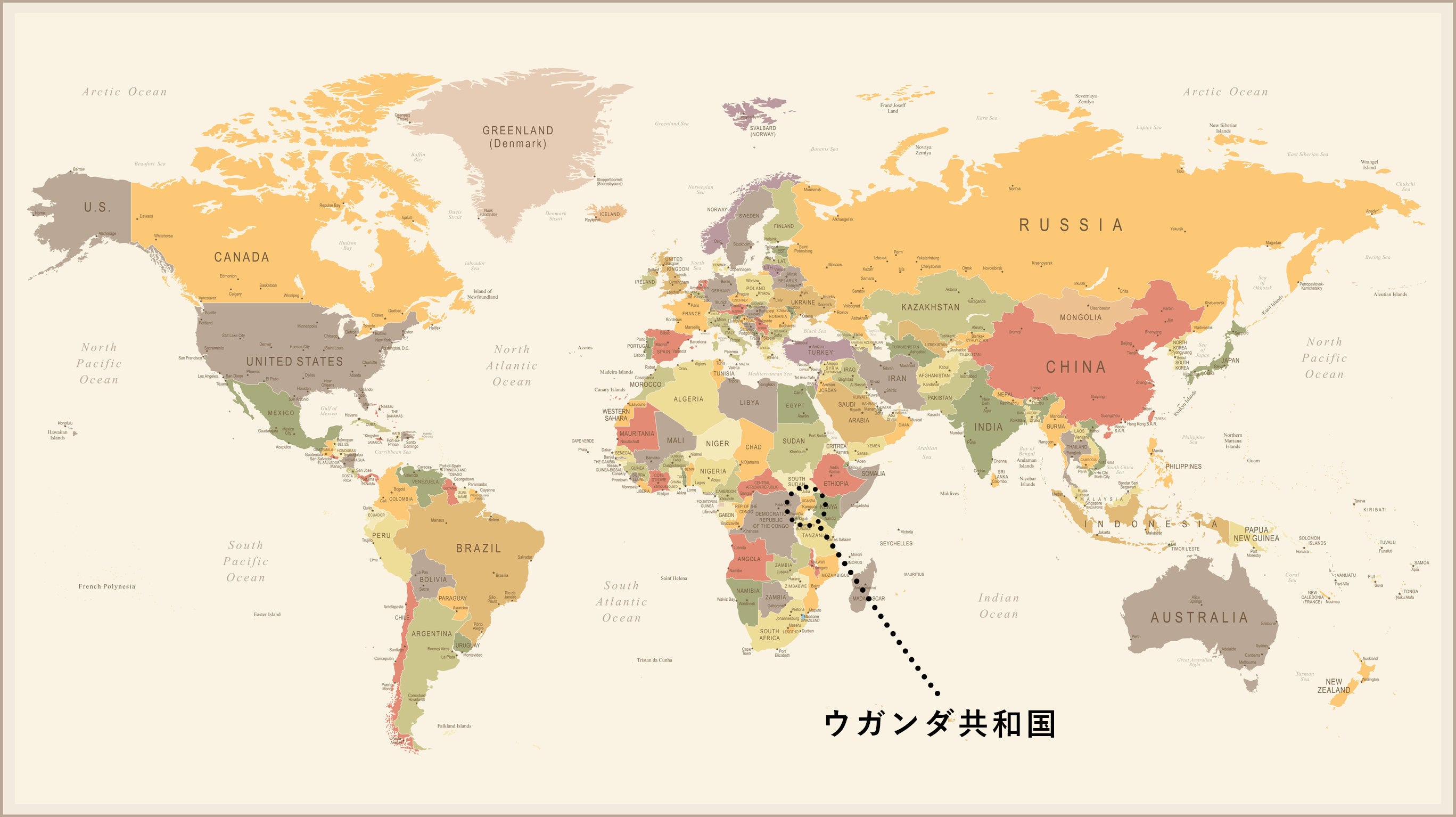 ウガンダ共和国はアフリカ大陸の東に位置する、赤道直下の5カ国に囲まれた内陸国です。世界で三番目に大きい湖のヴィクトリア湖をはじめ、山地や熱帯雨林など様々な美しい自然環境をもっています。