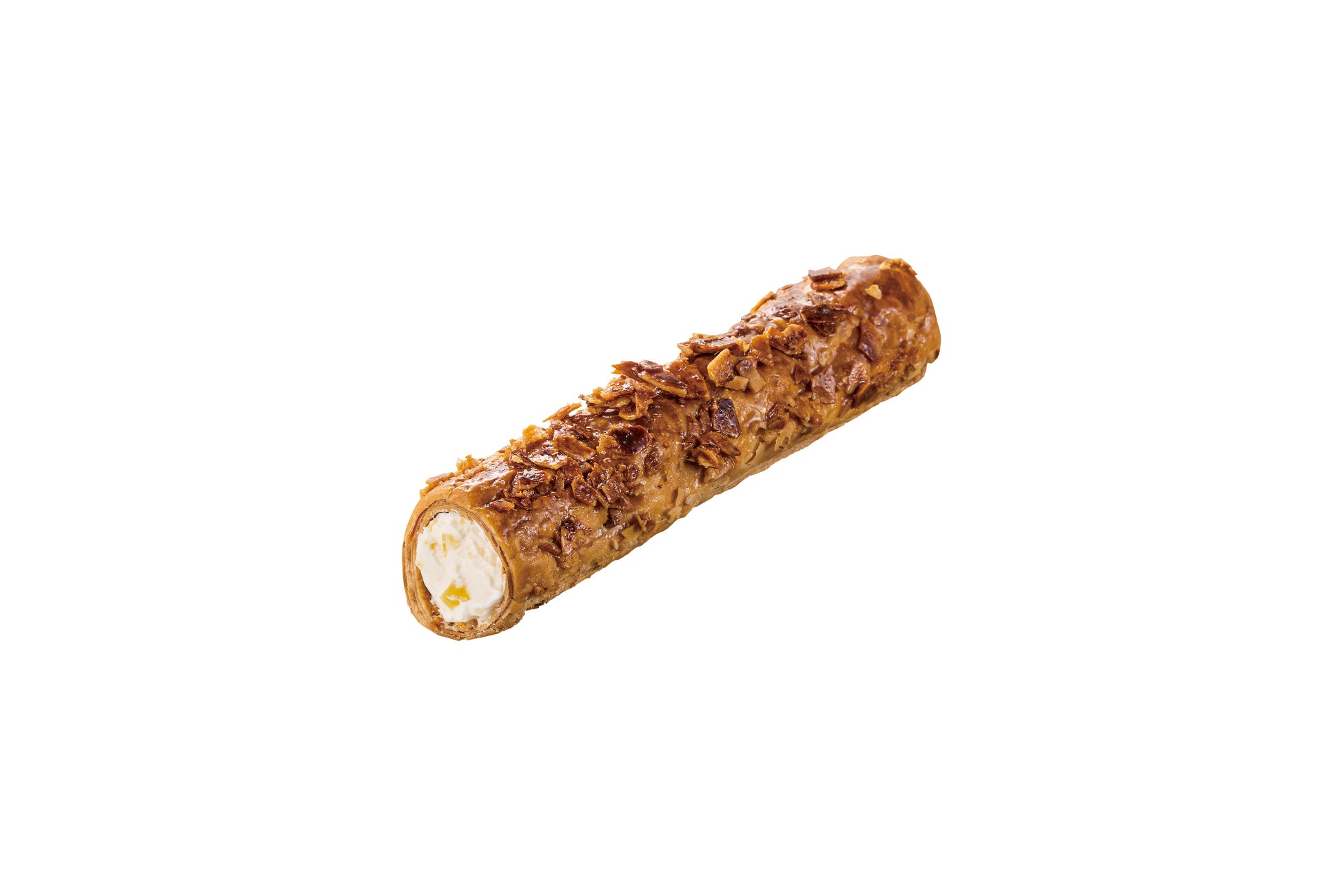 スライスアーモンドとフロランタンパウダーをふりかけオーブンで焼いたサクサクのパイに、ベルギー産ホワイトチョコレートを加えたレモンクリームを詰めました。ほどよい酸味のレモンピールがきいた爽やかなひと品です。ルミネエスト新宿店限定。