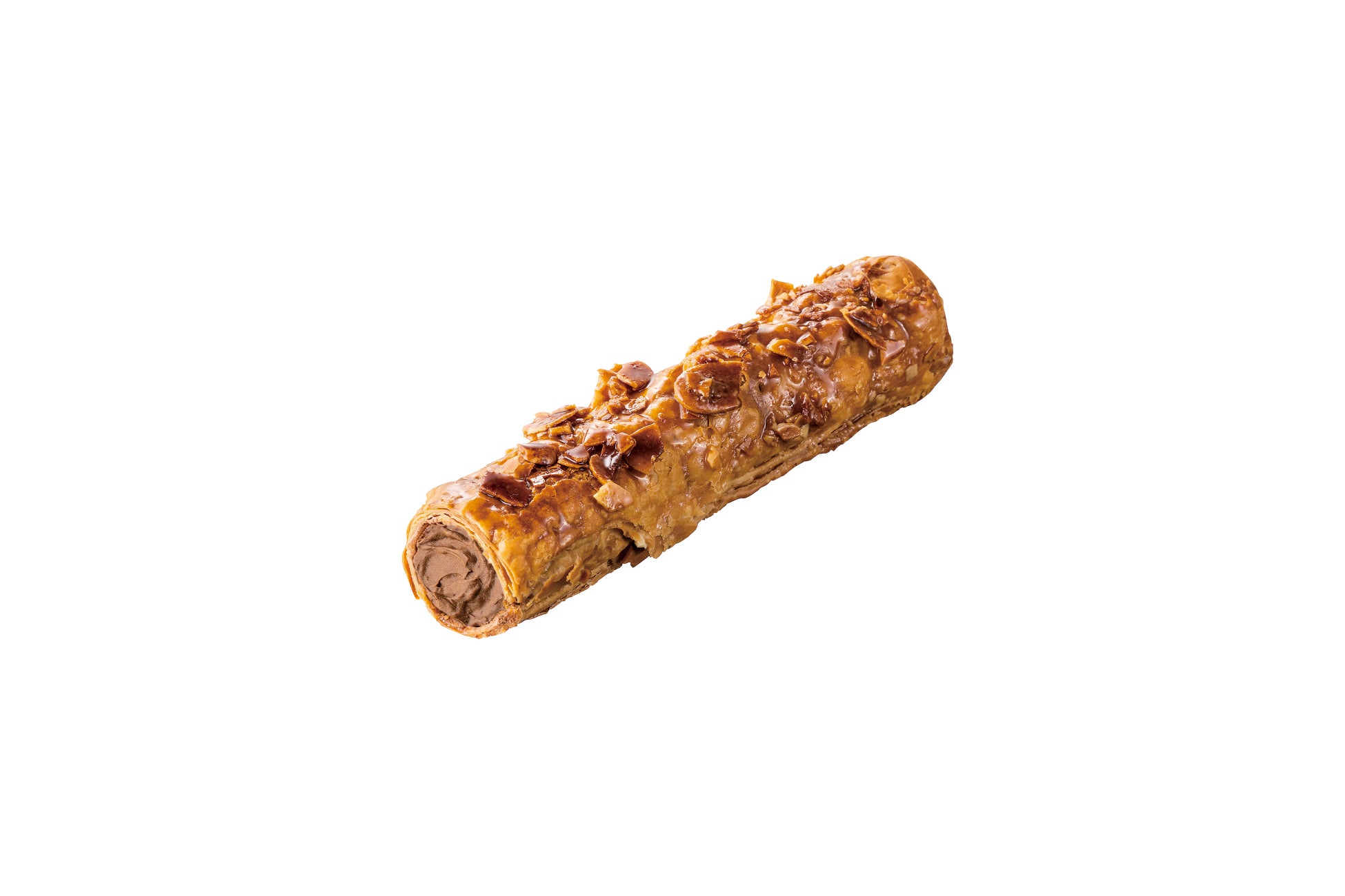 スライスアーモンドとフロランタンパウダーをふりかけオーブンで焼いたサクサクのパイに、ベルギー産チョコレートを使用した濃厚でなめらかなチョコレートクリームを詰めました。