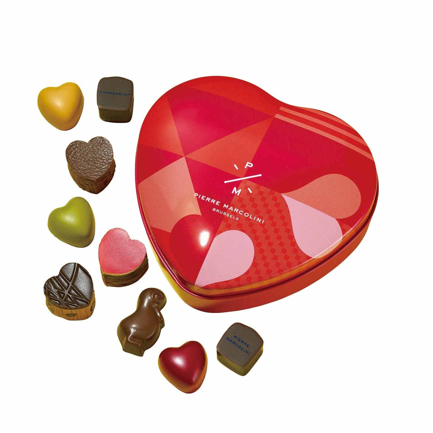 今年のテーマ「Touching hearts」。新作や人気チョコレートの詰め合わせ。