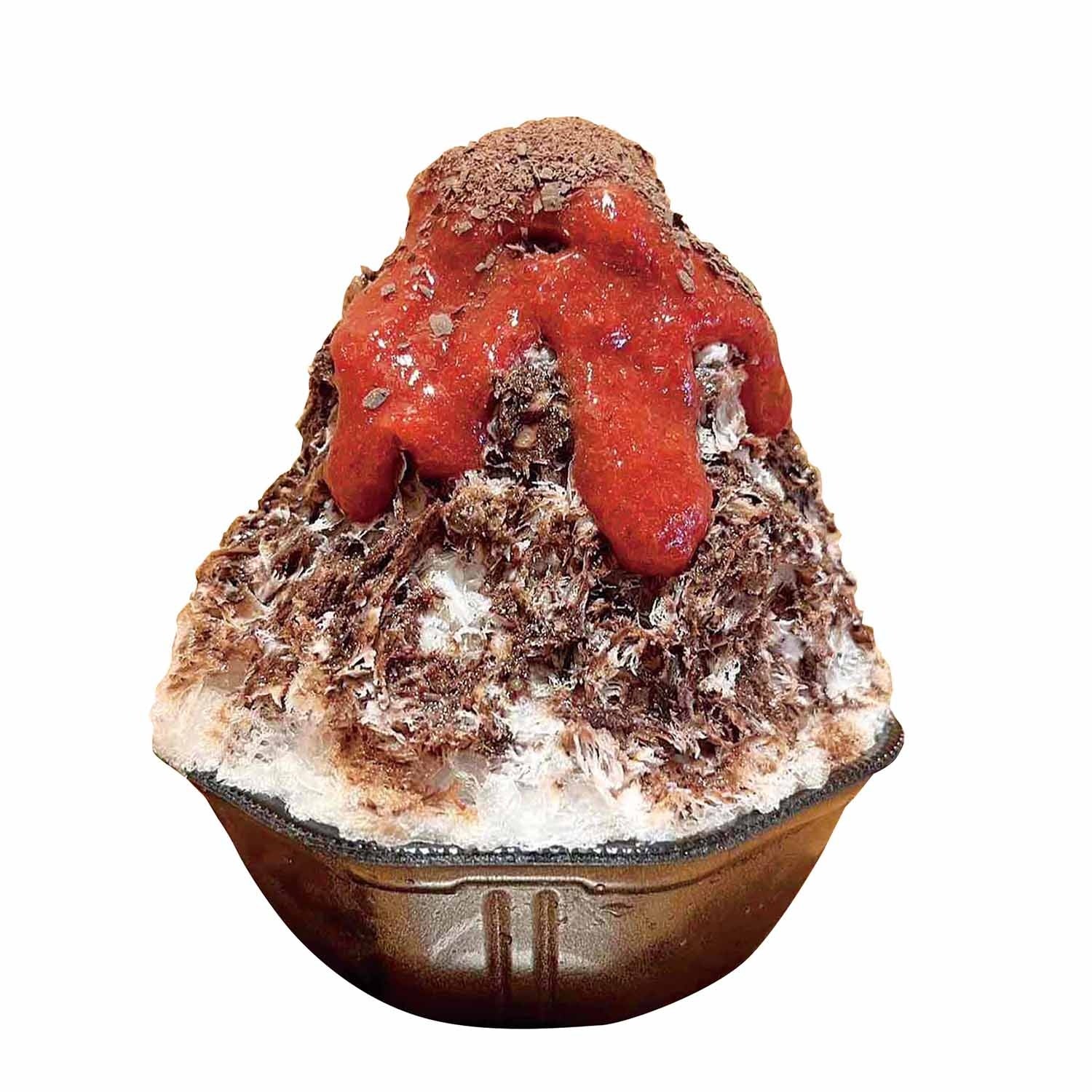 ビターチョコと酸味のある苺を組み合わせたかき氷。