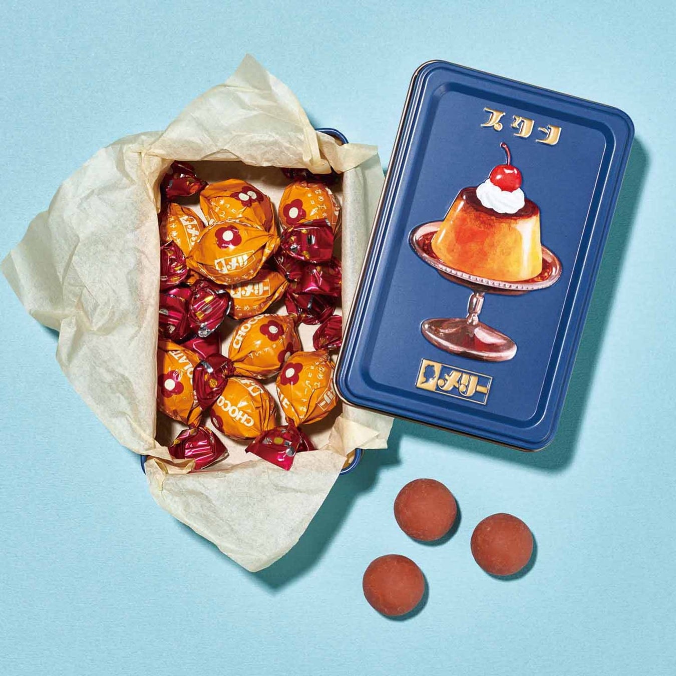レトロ喫茶風のイラストが目を引く、プリン風味のキャンデーインチョコレート。