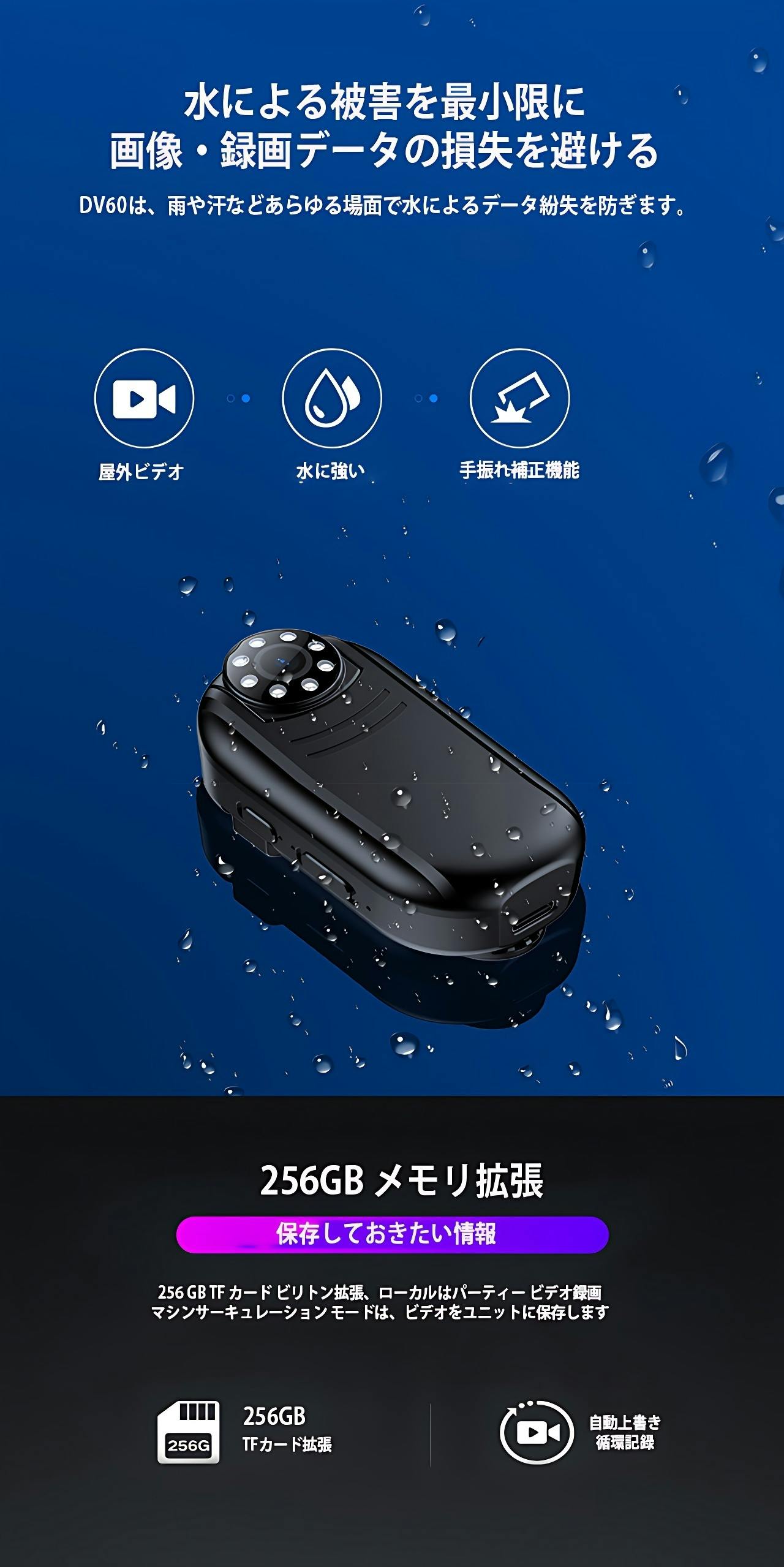 水に強い設計により動画や音声の大切なデータの損失を防ぐことができます。