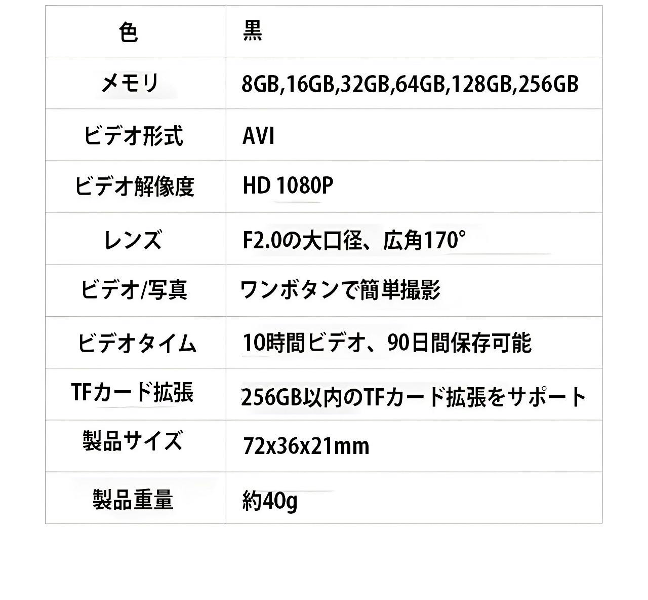 本体はコンパクトですが、アクションカメラにも負けない最大1080PのフルHDの高画質録画に対応しており、映像を超鮮明に記録できます。