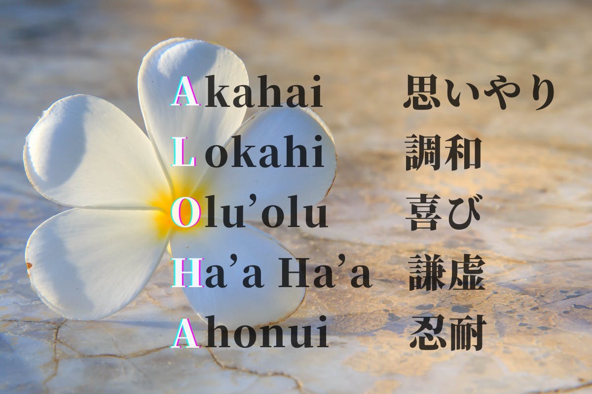 ハワイ語の意味は こんにちは・ようこそ・さようなら・ありがとう・愛してます などがあり、アロハ(ALOHA)はひとつの言葉ですべてを表現しています。