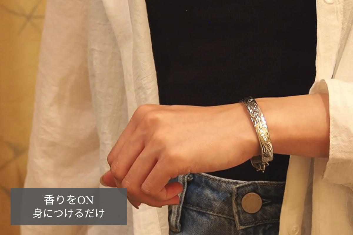 ちょっとお出かけする時も、ブレスレットを身につけるだけで、香水が纏えます。