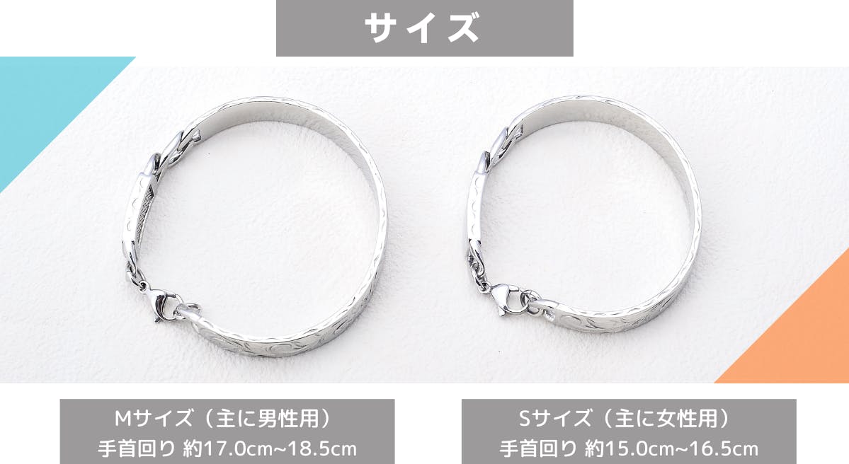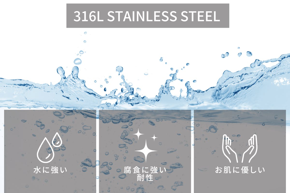 このブレスレット使用している素材は316Lステンレススチール。別名サージカルステンレスといい高級時計にも使用されています。腐食に強く比較的アレルギーが出にくいお肌に優しい素材となります。
