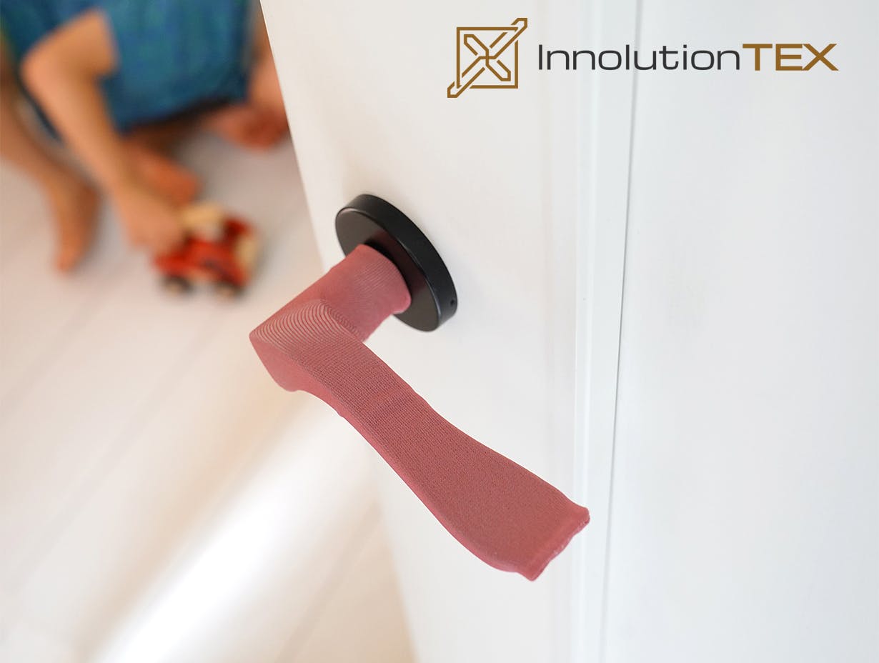 ドイツの生地製品のベンチャー企業InnolutionTexは、だれでも簡単に抗菌できるアイデアを研究し続け、ついに抗菌繊維「RUCO®-BAC AGP」と出会い、ドアノブカバーの開発に成功しました。