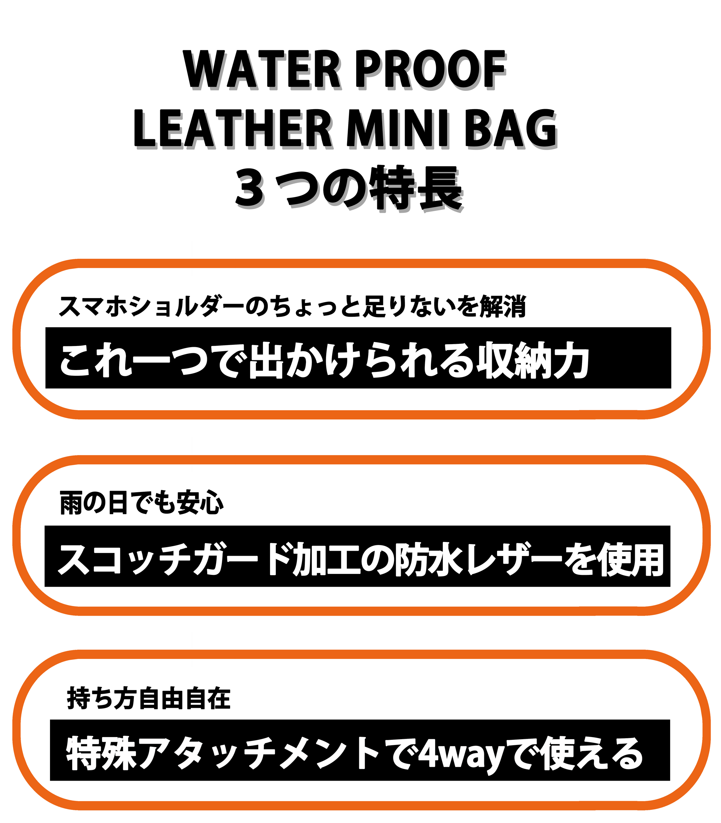 プロジェクト名:長年持続する防水本革の美しさ。スマホショルダーよりちょっと大きい大人ミニバッグ