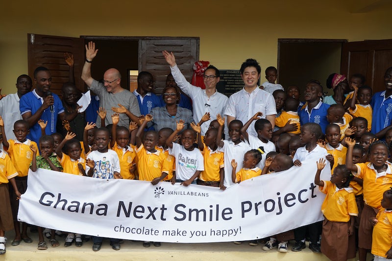 横浜に本社を置くチョコレートデザイン株式会社(代表取締役:八木克尚(やぎ かつひさ))は2000年3月1日設立、「チョコレートで世界を幸せに」を理念に掲げ、メインブランド「VANILLABEANS(バニラビーンズ)」の運営を通してお客様、作り手、カカオ原産国も幸せになる仕組み作りを行っています。2007年からフェアトレードチョコレートの導入を開始し、現在は「国際フェアトレード認証」を取得。ガーナに小中一貫校を建設するプロジェクトや農園事業の支援など売上金を活動費用にあて、原産国へのサポートも行っています。