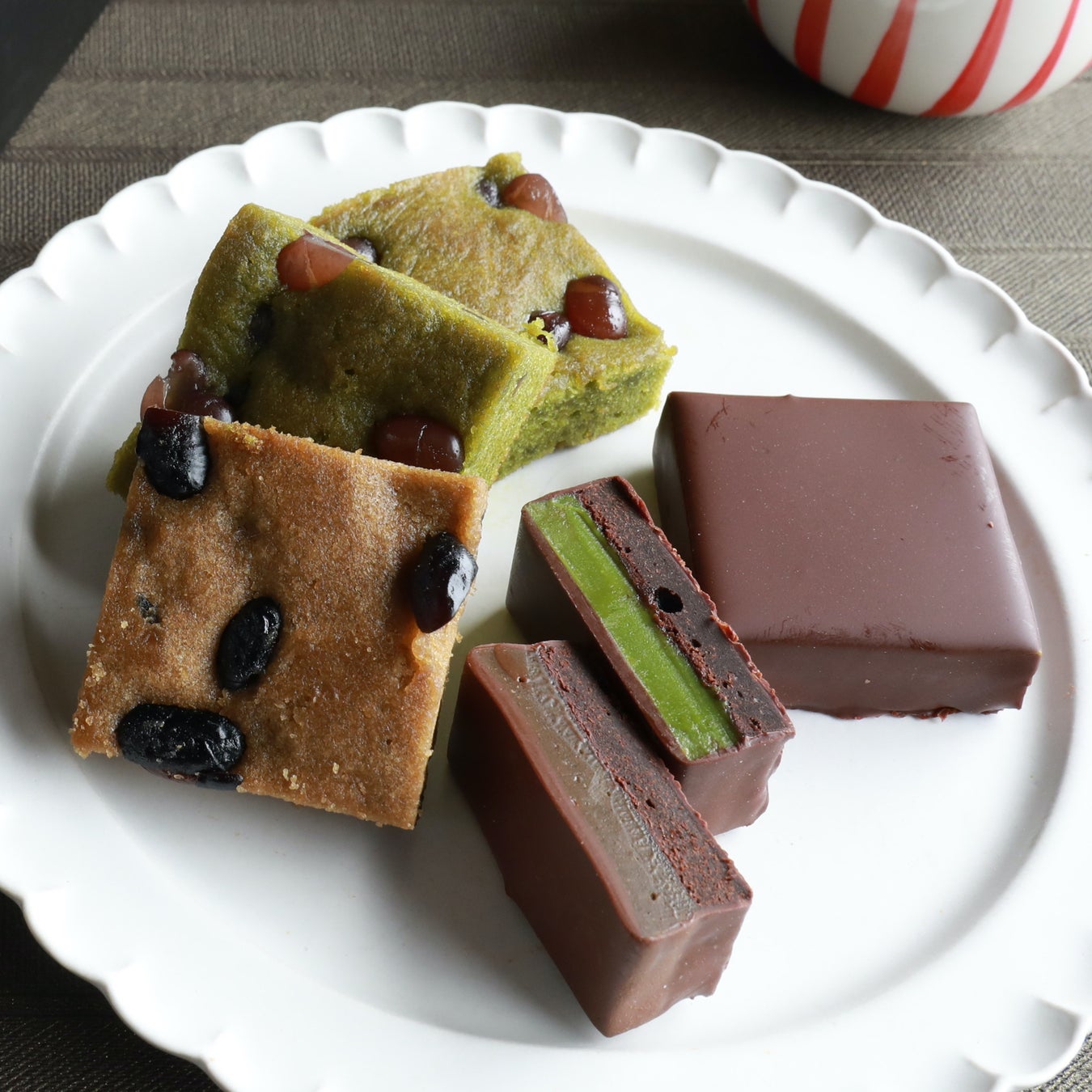しっとりとしたチョコレート生地に濃厚ガナッシュをのせ、パリッとチョコレートでコーティングした3層のプチショコラケーキ「パリトロ」の定番「スイート」と期間限定「深み抹茶」「ほうじ茶」の詰め合わせが今年も登場。豊かな香りのお茶の味わいをチョコレートで包みました。温かい緑茶と合わせることで優しくチョコレートの甘みが口の中に広がります。 |