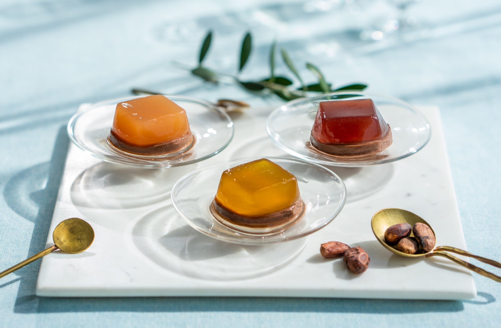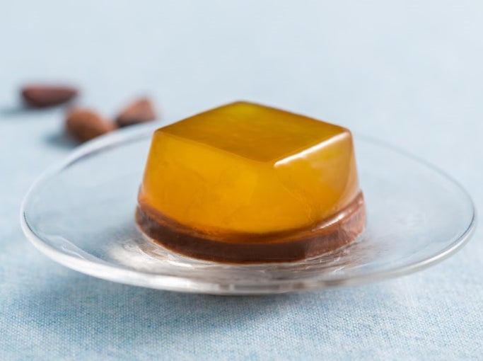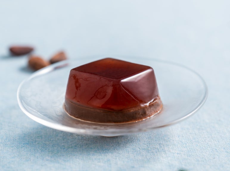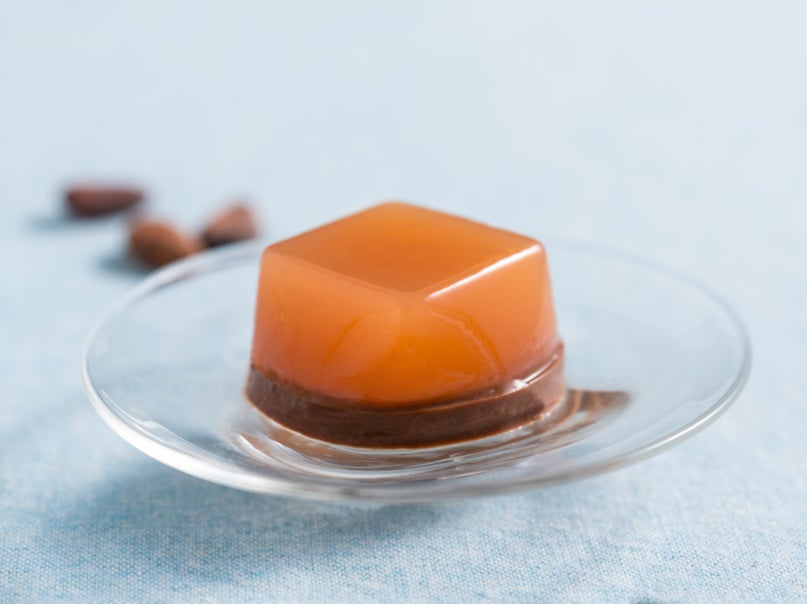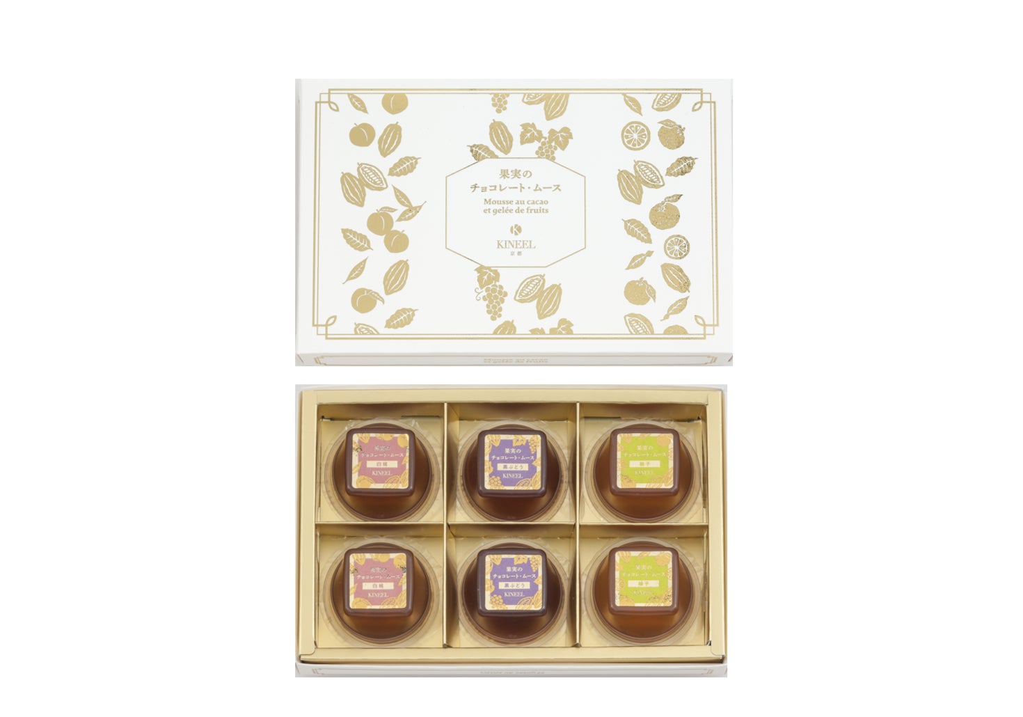 チョコレートムースに使用しているクーベルチュールスイートチョコレートは、カカオ分が多く、風味・なめらかな口溶けが特徴です。果実のゼリーは、厳選した国産果実を使用し爽やかな味わいに仕上げました。この2層が奏でる濃厚なチョコレートと果実の爽やかなハーモニーをお楽しみください。